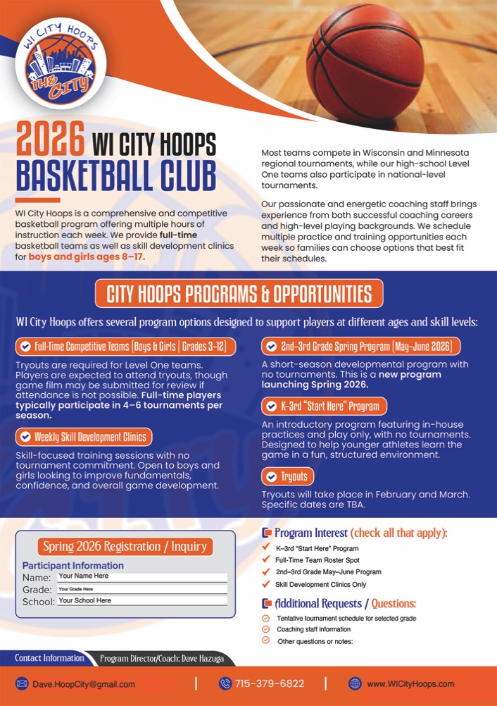 Teams will compete in 4-6 spring tournaments and some teams will also play summer tournaments.
